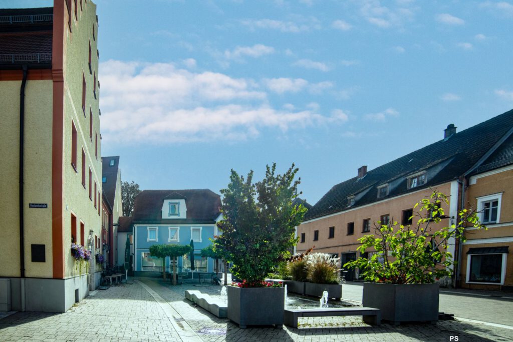 Stadtplatz vom Westen mit Rentamt und Regensburger Tor 1894